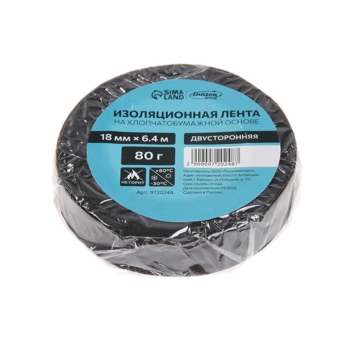 Изолента Luazon Lighting, ХБ, 80 гр, 18 мм х 6.4 м, двусторонняя обычной липкости