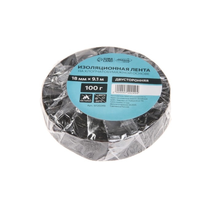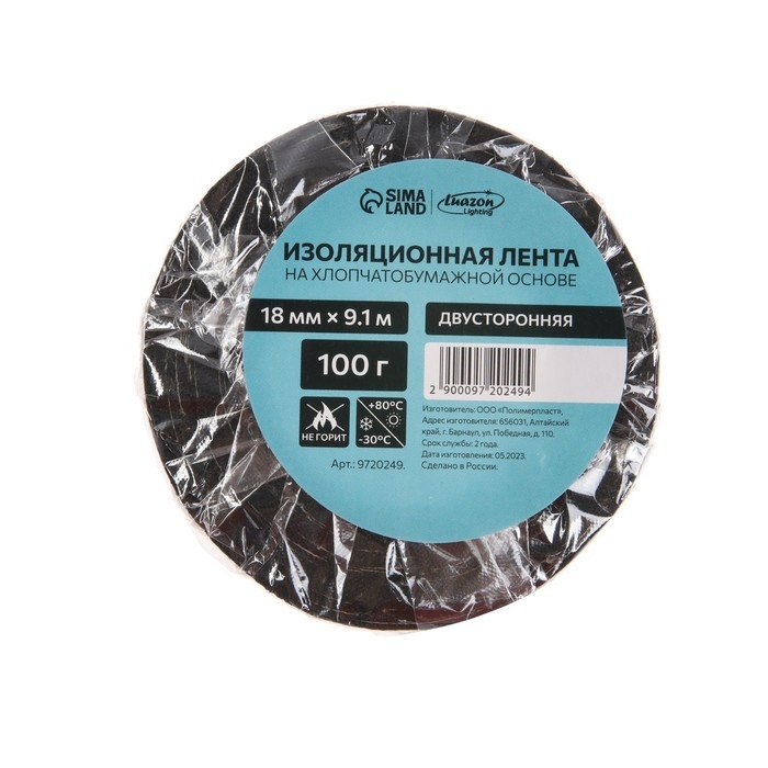 Изолента Luazon Lighting, ХБ, 100 гр, 18 мм х 9.1 м, двусторонняя, обычной липкости
