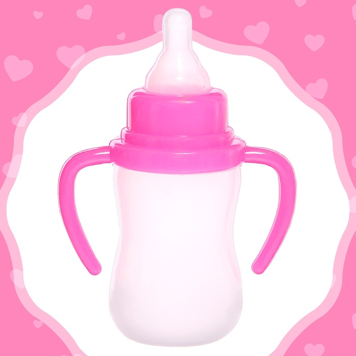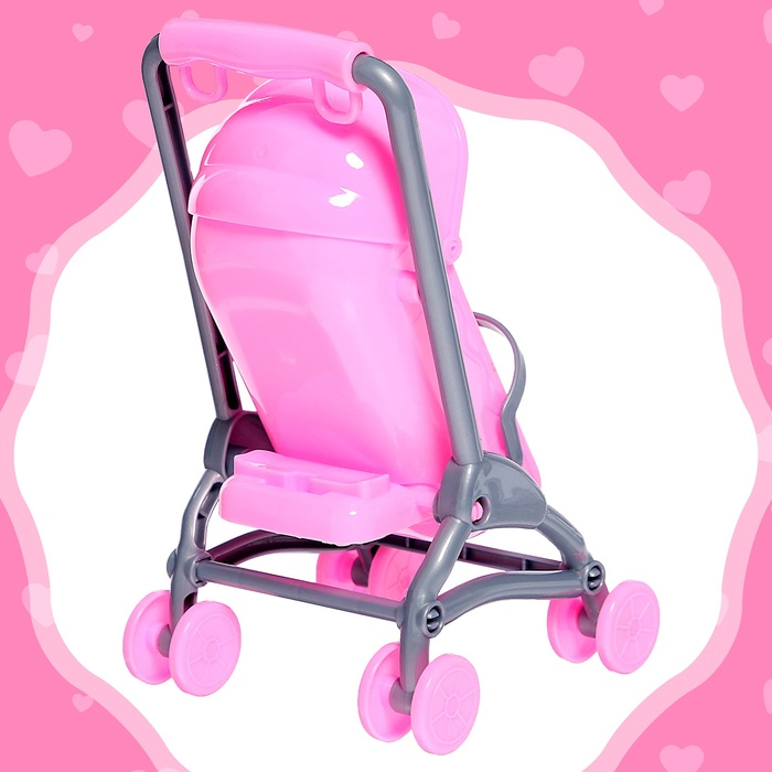 В комплекте есть аксессуары для весёлой игры: коляска, бутылочка и соска.