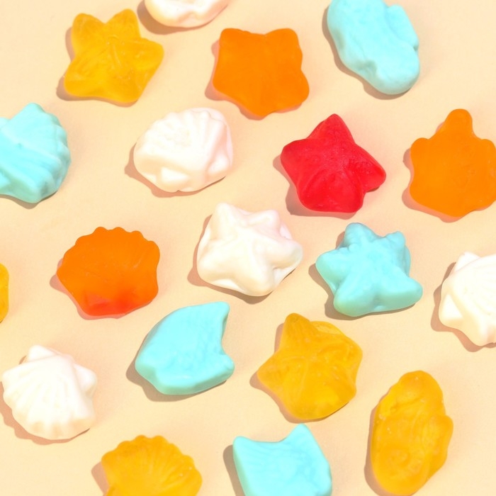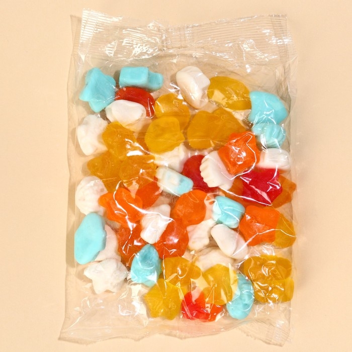 Состав: глюкозный сироп, сахар, агент желирующий - желатин, регулятор кислотности - лимонная кислота (Е330), ароматизаторы: банан, вишня, ананас, ежевика, апельсин, красители пищевые: тартразин (Е102), жёлтый "Солнечный закат" (Е110), кармуазин (Е122), диоксид титана (Е171), синий блестящий FCF (Е133), глазирователь: каранубский воск, растительное масло.