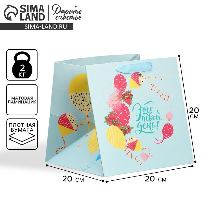 Пакет подарочный квадратный, упаковка, Your day, 20 х 20 х 20 см