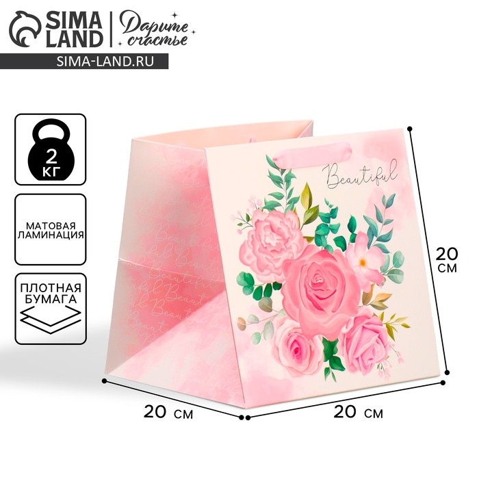 Пакет подарочный квадратный, упаковка, For you my beaty, 20 х 20 х 20 см
