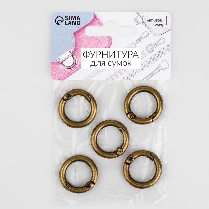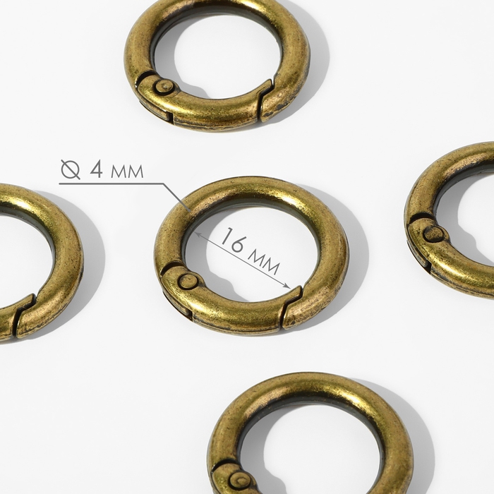 Кольцо-карабин, d = 16/24 мм, толщина - 4 мм, 5 шт, цвет бронзовый