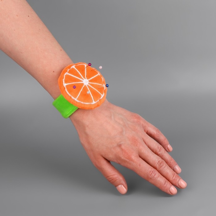 Игольница на браслете «Апельсин», 23 × 7 см, цвет зелёный