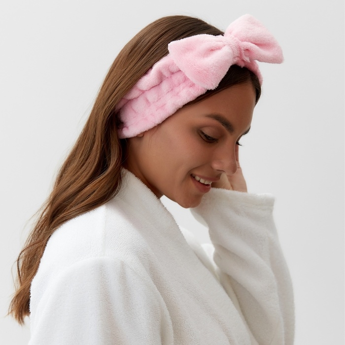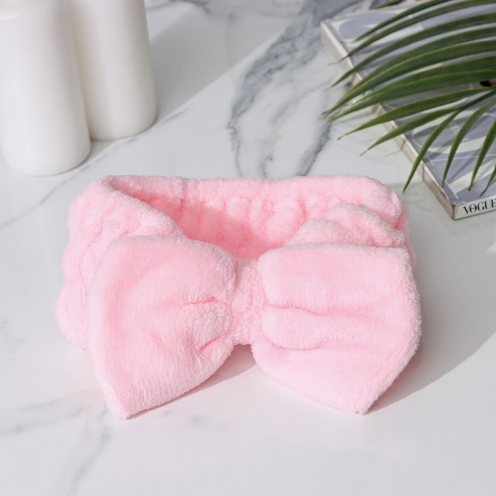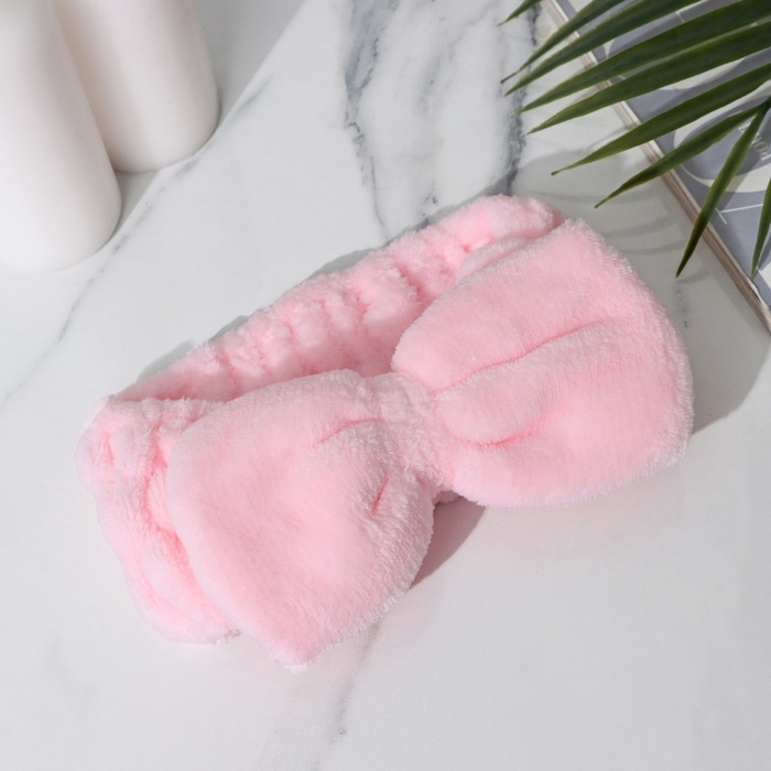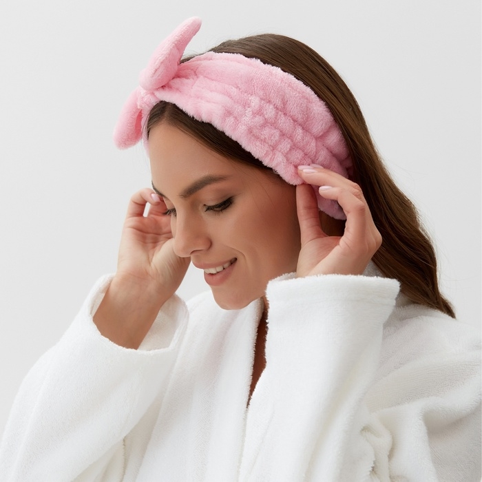Повязка для умывания из микрофибры Доляна «Бантик», цвет розовый