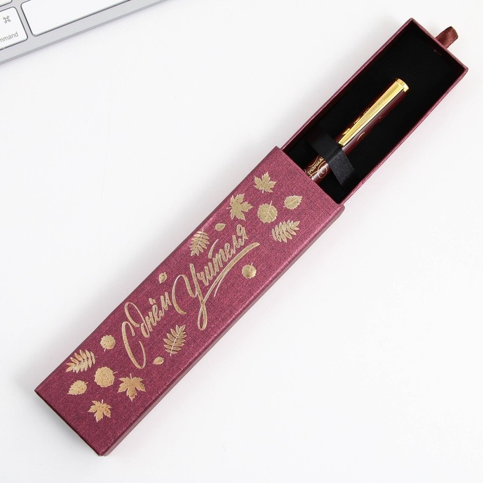 Ручка в подарочном футляре «Учителю: С Днём Учителя», металл, синяя паста, пишущий узел 1.0 мм