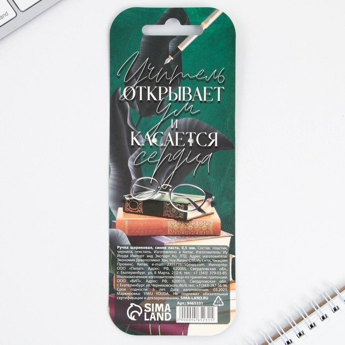 Подарочная ручка «Учителю: С Днём Учителя», пластик, синяя паста, пишущий узел 1 мм