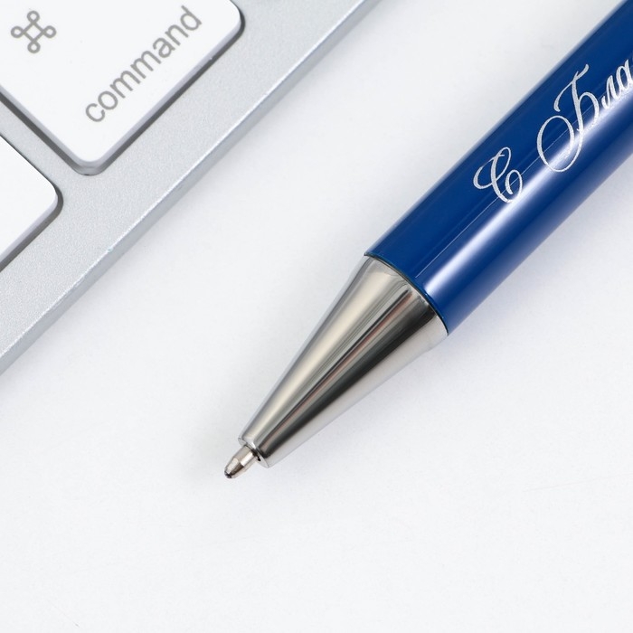 Ручка шариковая синяя паста, пластиковая со звездой "С 23 Февраля"