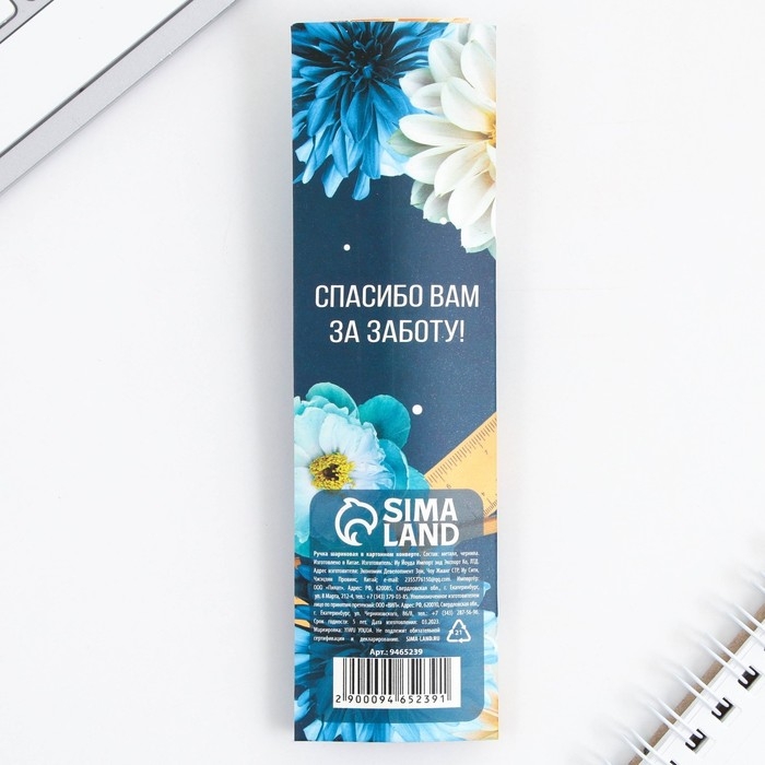 Ручка шариковая синяя паста «Цветок»,пластик, на подложке 8 марта
