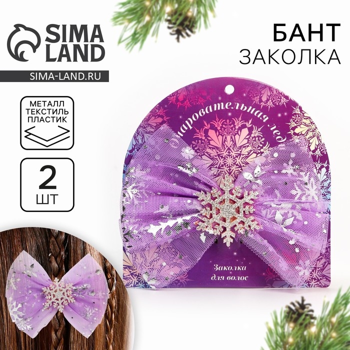 Набор подарочный, бант для волос на резинке 2 шт, заколка зажим для волос 2 шт, Принцессы