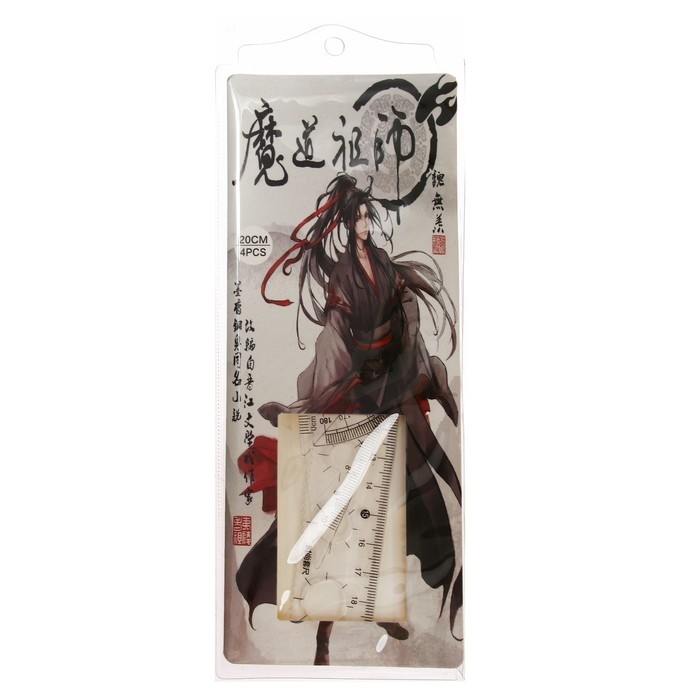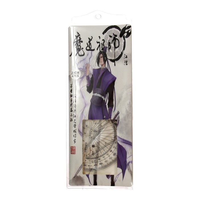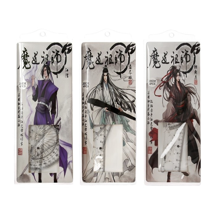 Набор геометрический "Аниме", (линейка, транспортир, 2 угольника) в пенале, МИКС