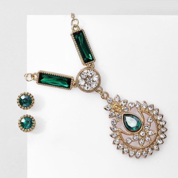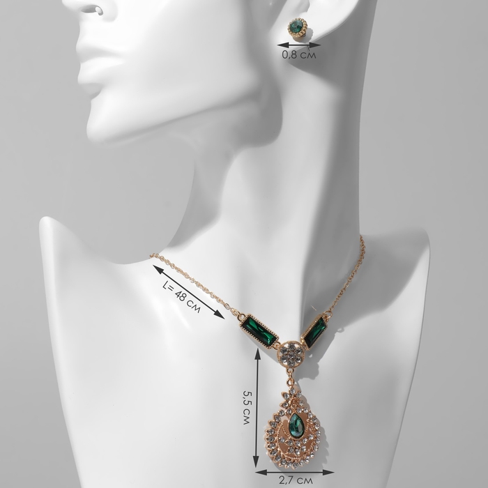 Гарнитур 2 предмета: серьги, кулон «Роса» цветочная, цвет зелёно-белый в золоте, 48 см