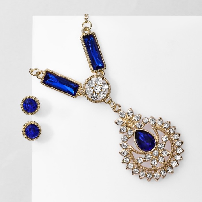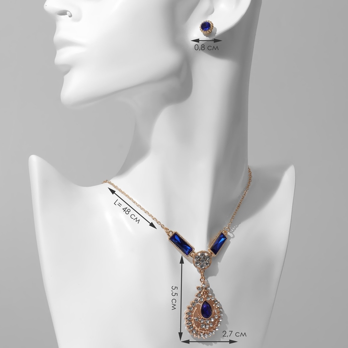 Гарнитур 2 предмета: серьги, кулон «Роса» цветочная, цвет сине-белый в золоте, 48 см