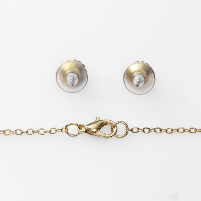 Гарнитур 2 предмета: серьги, кулон «На леске» классика, цвет белый в золоте, 30 см
