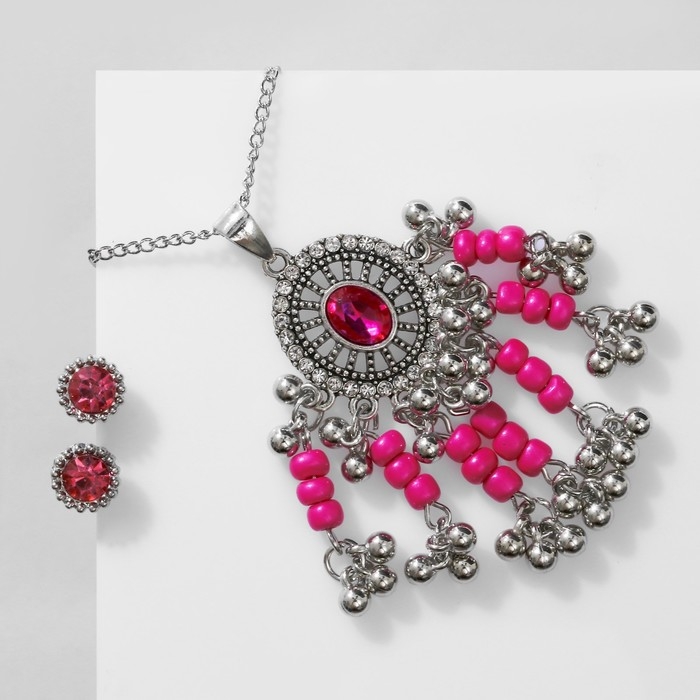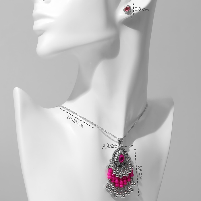 Гарнитур 2 предмета: серьги, кулон «Соло» овал, цвет малиново-белый в чернёном серебре, 48 см