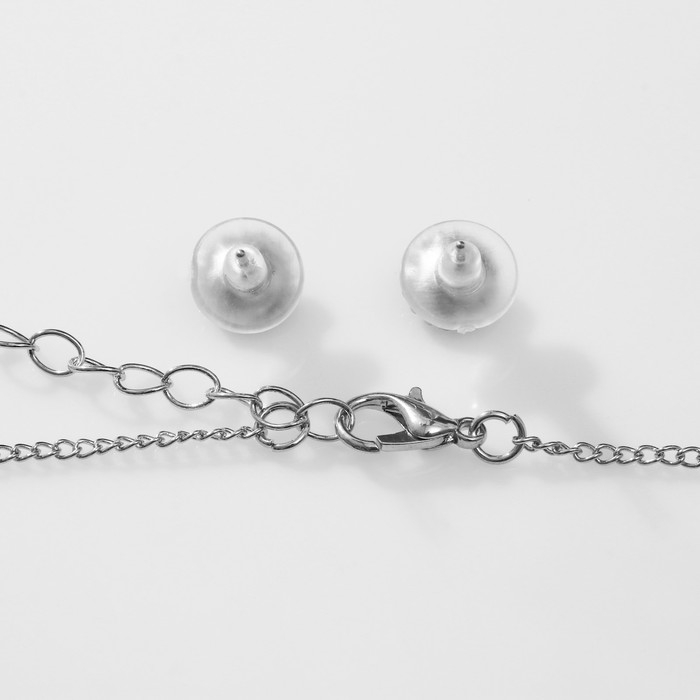 Гарнитур 2 предмета: серьги, кулон «На леске» классика, цвет белый в золоте, 30 см