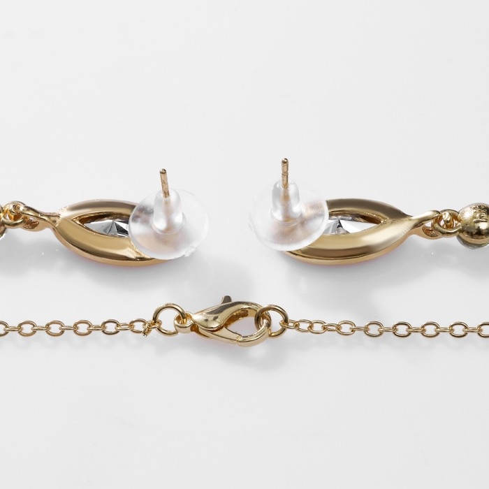 Гарнитур 2 предмета: серьги, кулон «На леске» классика, цвет белый в золоте, 30 см