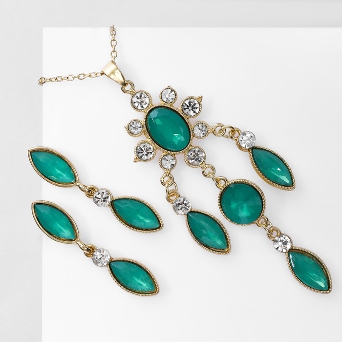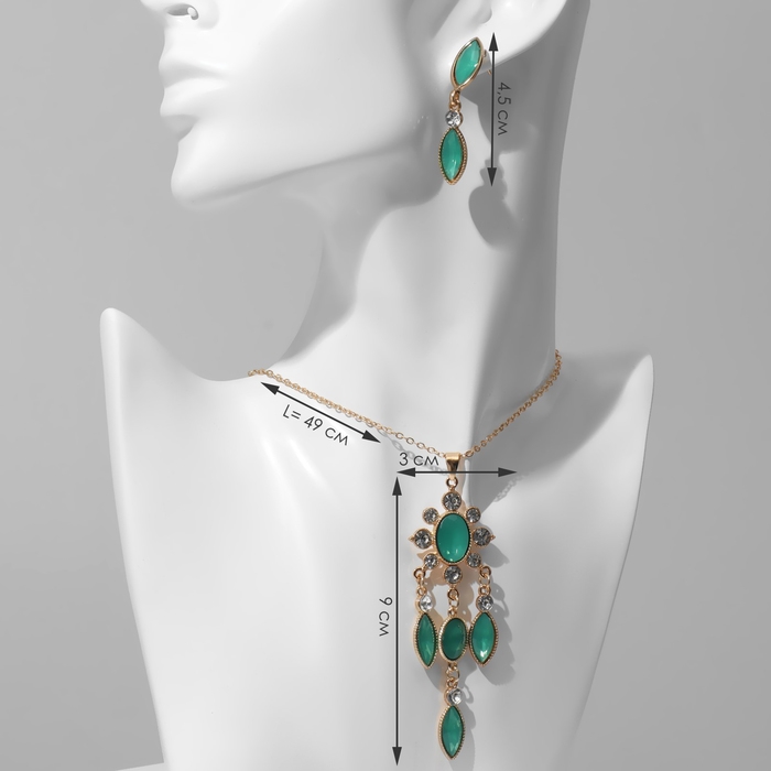 Гарнитур 2 предмета: серьги, кулон «Калейдоскоп», цвет зелёно-белый в золоте, 48 см