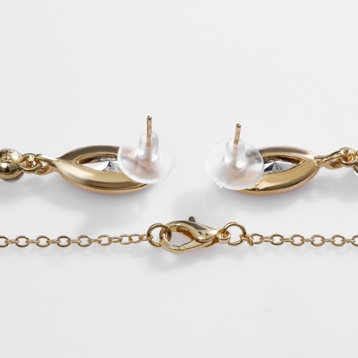 Гарнитур 2 предмета: серьги, кулон «На леске» классика, цвет белый в золоте, 30 см