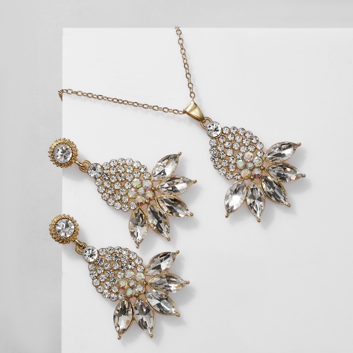 Гарнитур 2 предмета: серьги, кулон «Лотос», цвет радужно-белый в золоте, 48 см