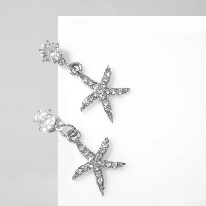 Серьги со стразами «Морская звезда», цвет белый в серебре
