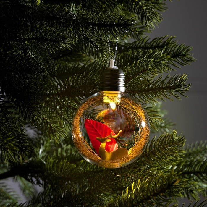 Ёлочный шар «Олень», батарейки, 1 LED, свечение тёплое белое