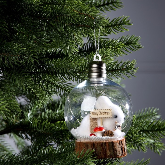Ёлочный шар «Заяц», батарейки, 1 LED, свечение тёплое белое