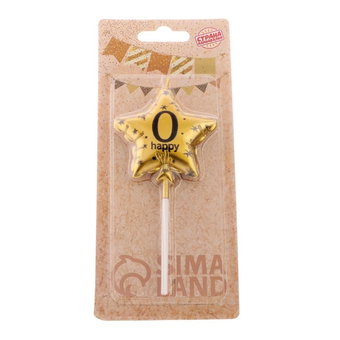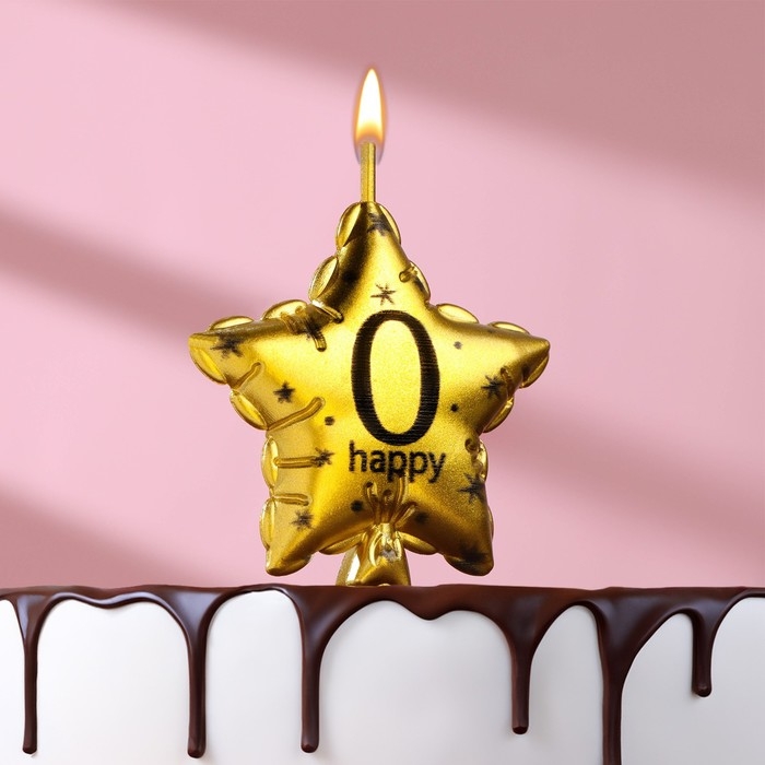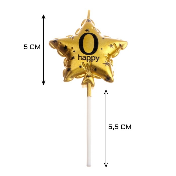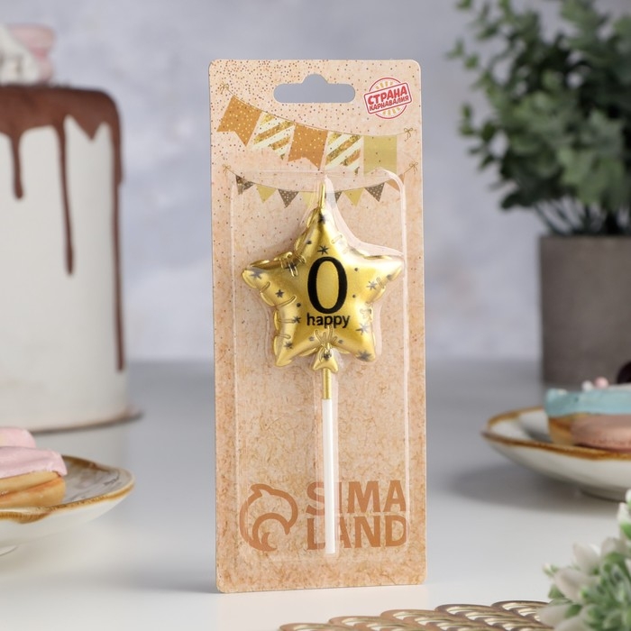 Свеча в торт на шпажке "Воздушный шарик.Звезда", цифра 0, 5,5 см, золотая