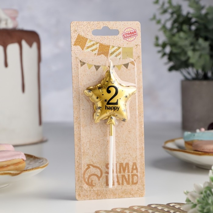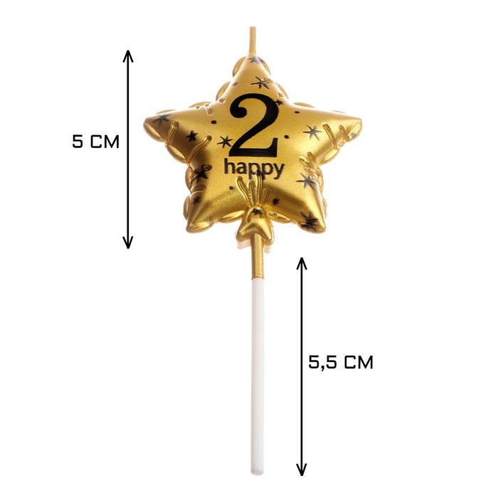 Свеча в торт на шпажке "Воздушный шарик.Звезда", цифра 2, 5,5 см, золотая