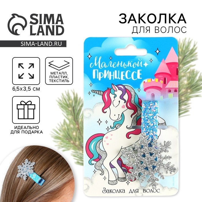 Заколка для волос новогодняя «Маленькой принцессе», на Новый год, снежинка, 15 х 5 см