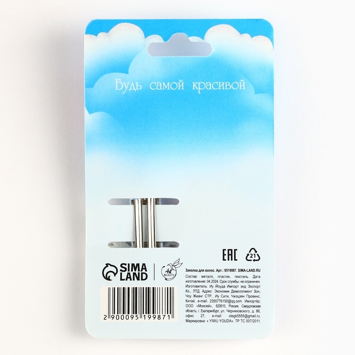 Заколка для волос, шейкер, 4 штуки МИКС