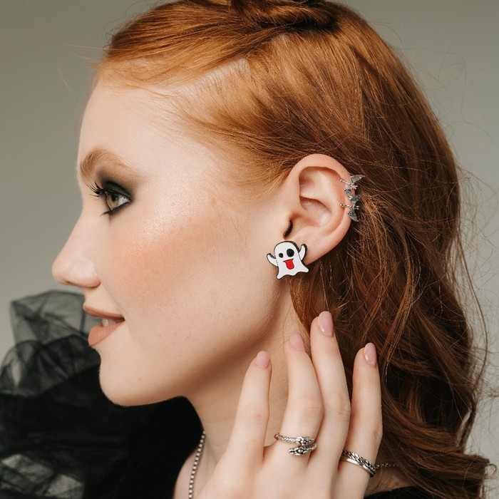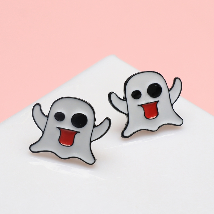 Серьги с эмалью «Монстрики» с рожками, пушистый, цвет голубой
