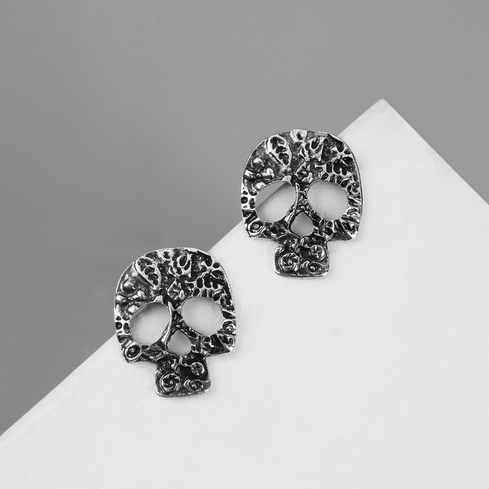 Серьги «Черепа» ажурные, цвет чернёное серебро