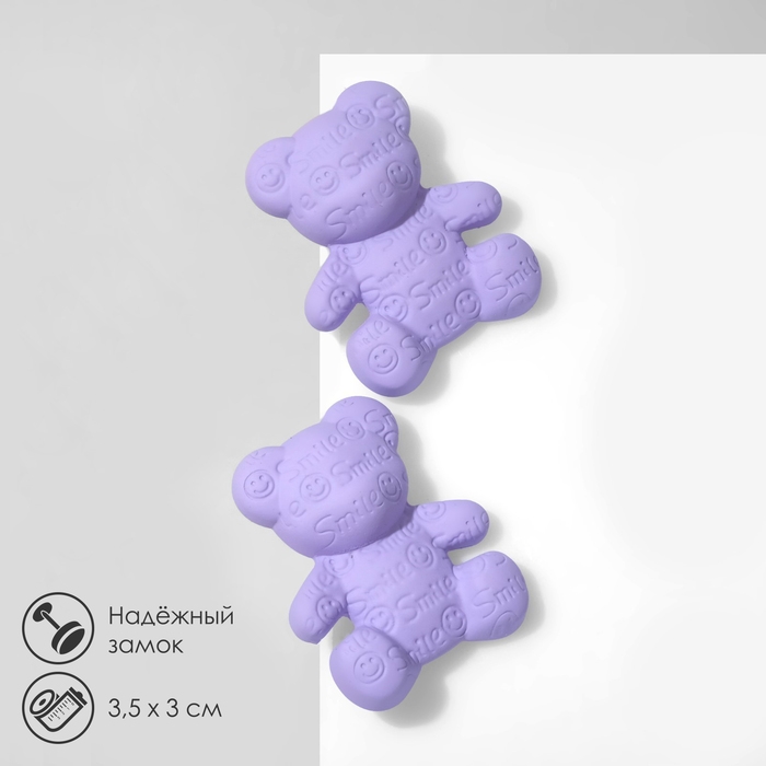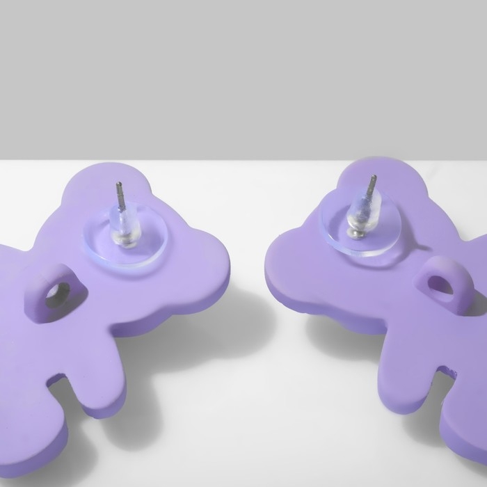 Серьги пластик «Мишки» со смайликами, цвет сиреневый