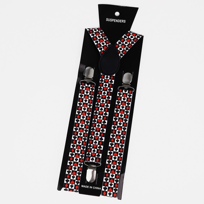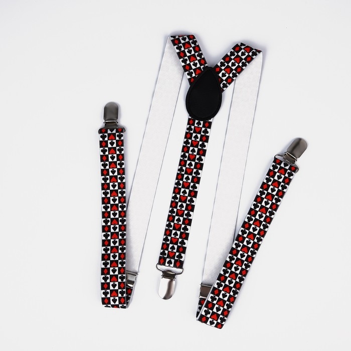Подтяжки взрослые, ширина 2.5 см, цвет белый/красный/чёрный