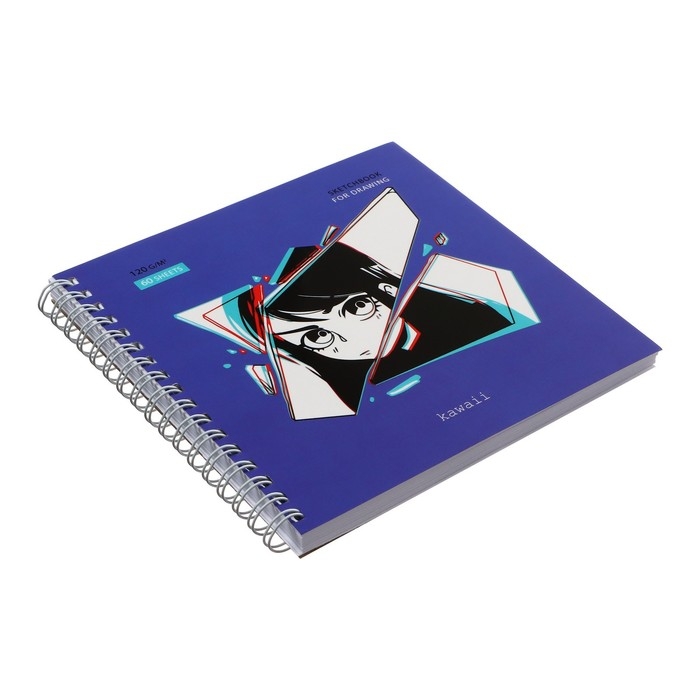 Скетчбук MESHU 150 х 150 мм, 60 листов, на гребне Kawaii, выборочный лак, покрытие Soft-Touch, блок 120 г/м2