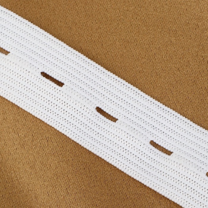 Резинка с перфорацией — это универсальный и удобный товар для любителей шитья и рукоделия. Эта резинка имеет специальные прорези, которые предназначены для установки пуговиц или других элементов. Удобство использования такой резинки заключается в том, что она позволяет регулировать размер и объём готового изделия, а также фиксирует и предотвращает провисание и соскальзывание. Резинка с прорезями пришивается или вдевается в кулиску, при этом боковые части с перфорацией остаются свободными. Пришиваются пуговицы, а дырки служат петлями. Таким образом при необходимости осуществляется поясная фиксация.