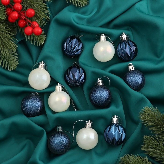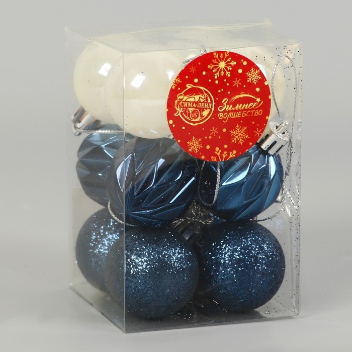 Набор шаров пластик d-4 см, 12 шт "Мелодия" грани блеск, белый синий