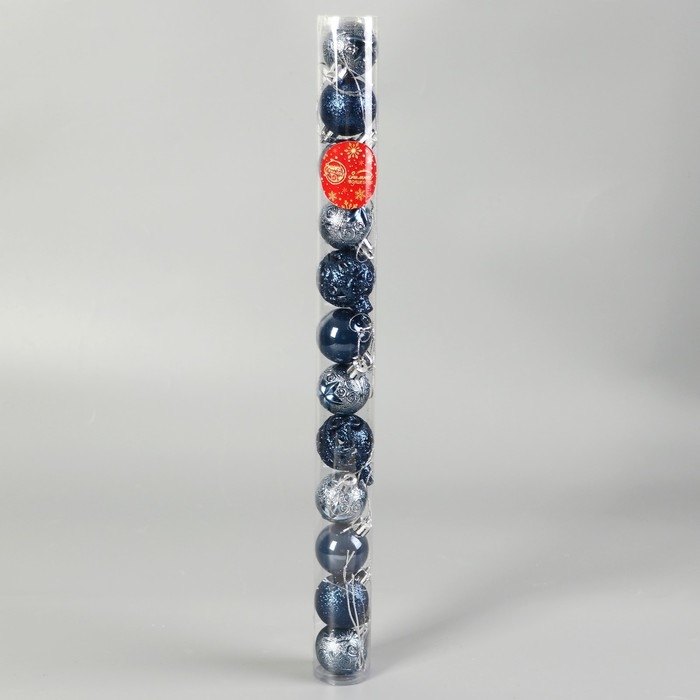 Набор шаров пластик d-4 см, 12 шт "Мелодия" орнамент блеск, синий