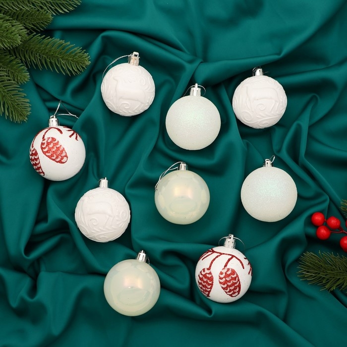 Набор шаров пластик d-6 см, 9 шт "Мелодия" шишки, красно-белый