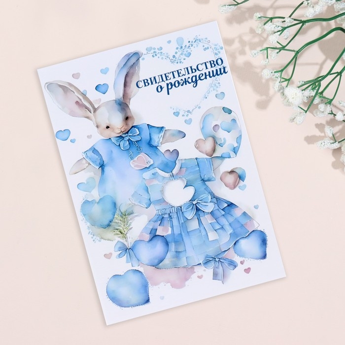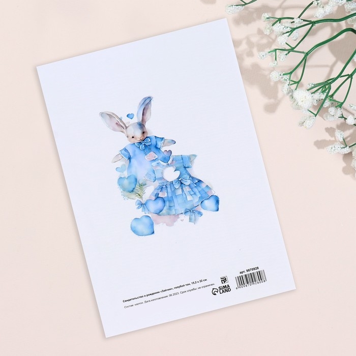 Папка под свидетельство о рождении "Зайчик" голубой тон, А5