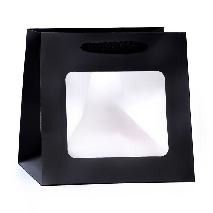 Пакет подарочный, крафт, с окном, «Черный», 15 х 15 х 15 см