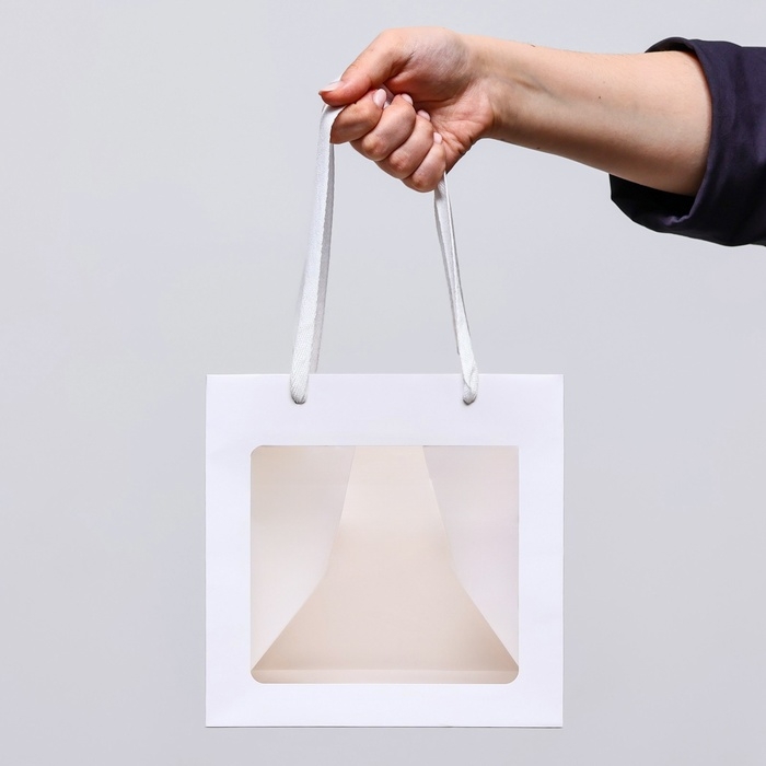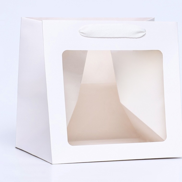 Пакет подарочный, крафт, с окном, «Белый», 20 х 20 х 20 см