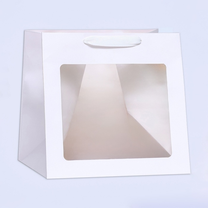 Пакет подарочный, крафт, с окном, «Белый», 25 х 25 х 25 см