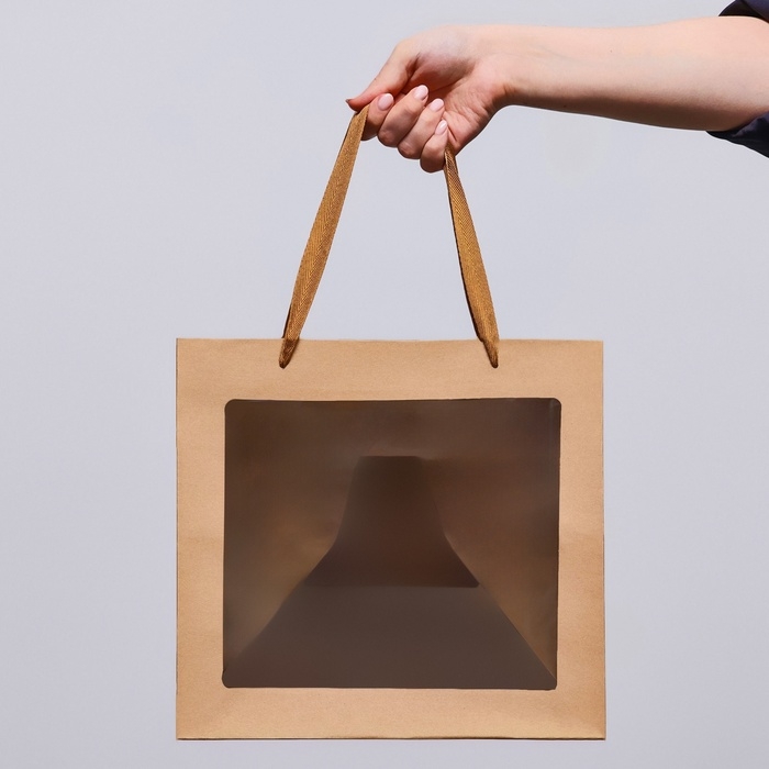 Пакет подарочный, крафт, с окном, 30 х 30 х 30 см