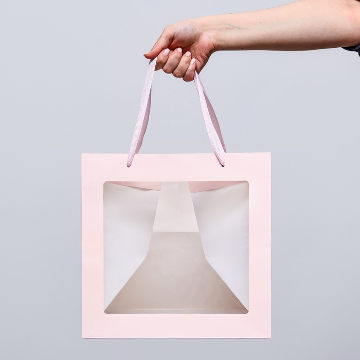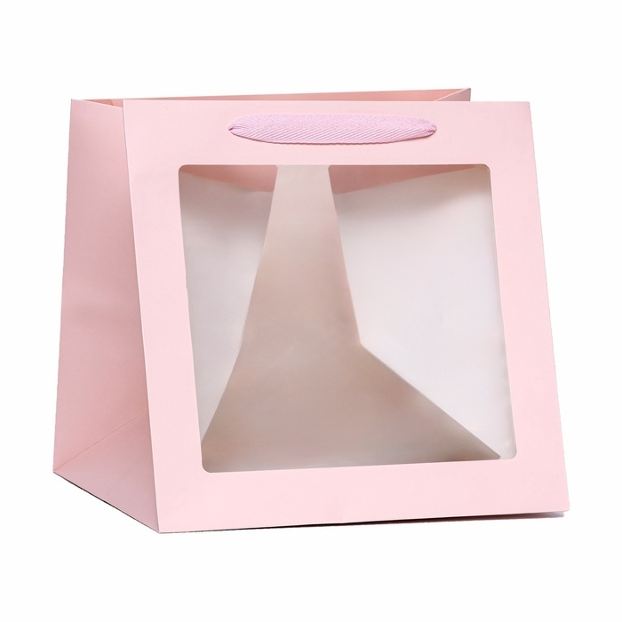 Пакет подарочный, крафт, с окном, «Розовый», 30 х 30 х 30 см