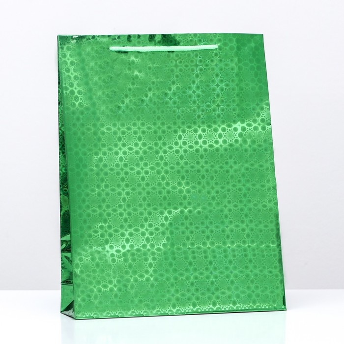Новый год. Пакет подарочный, фольгированный, "Зеленый" 34 Х 26 Х 8 см.