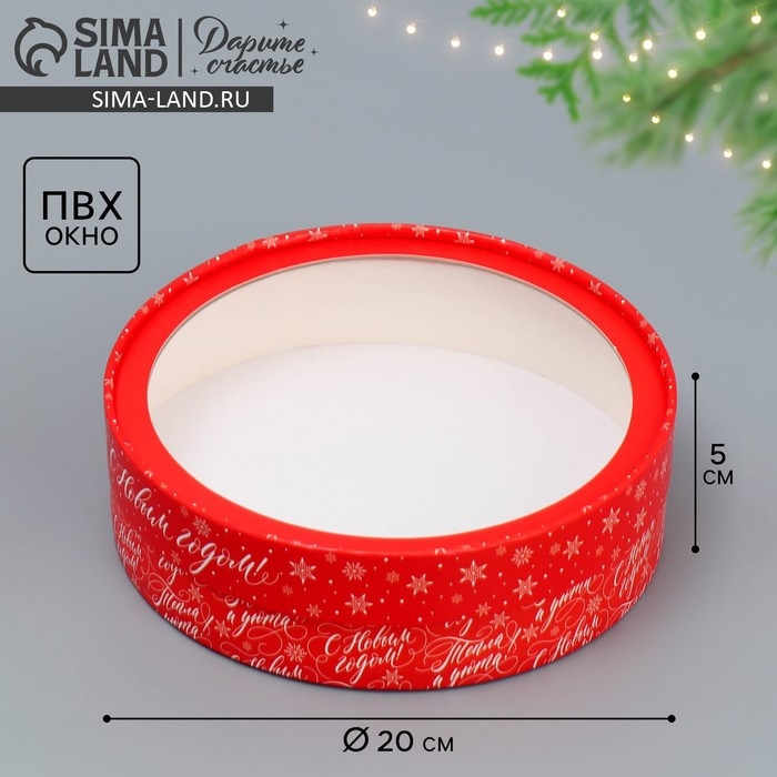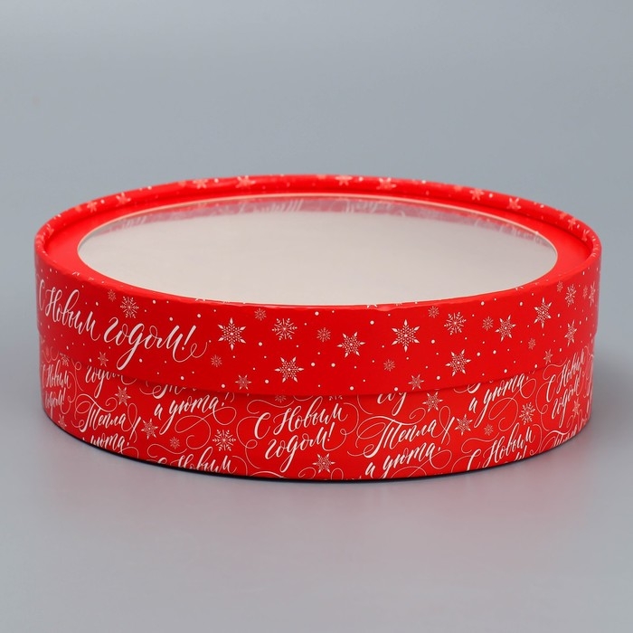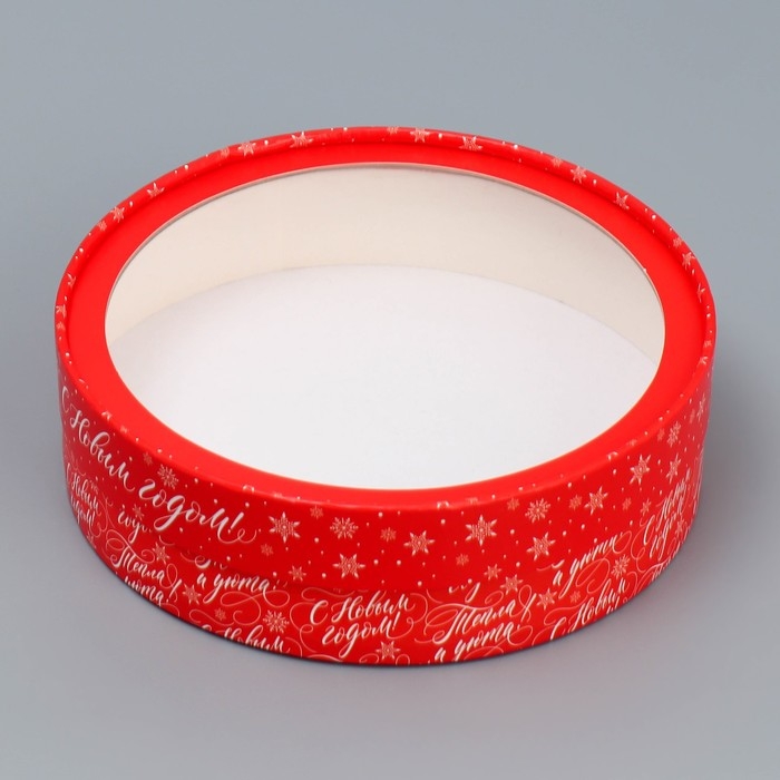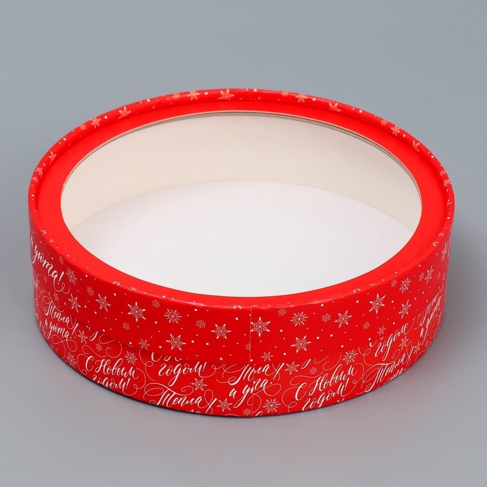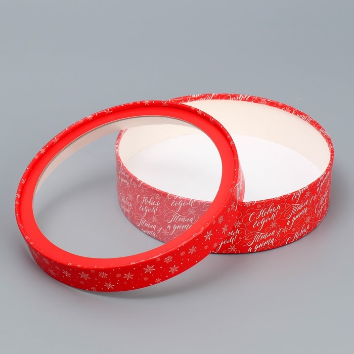 Коробка для макарун тубус с окном «Тепла и уюта», 20 х 20 х 5 см, Новый год