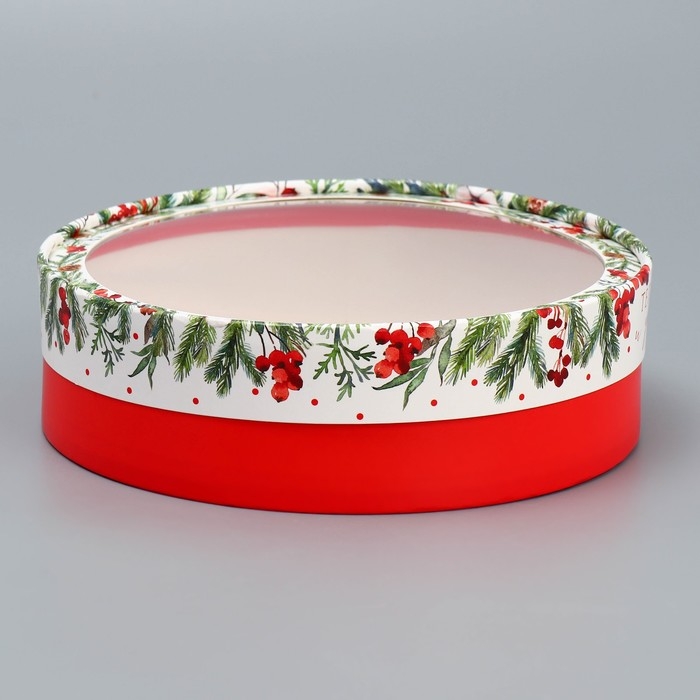 Коробка для макарун тубус с окном «Новогодняя ботаника», 20 х 20 х 5 см, Новый год