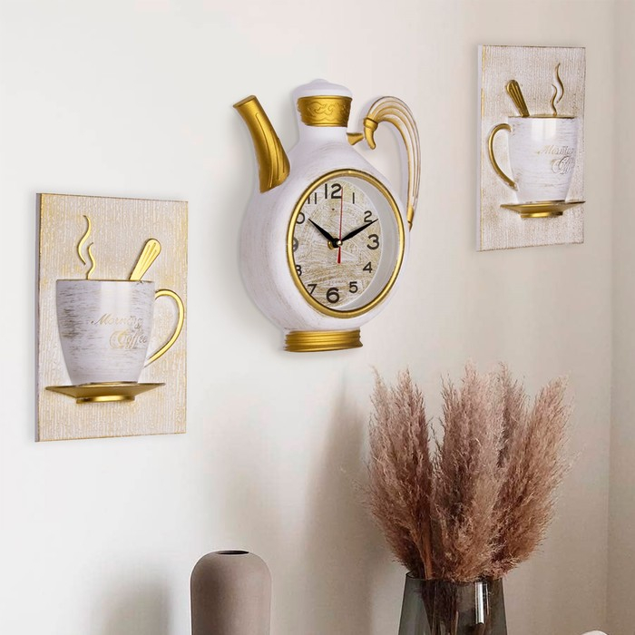 Часы настенные интерьерные для кухни "Сангино", бесшумные, 26.5 х 24 см, d-13 см, белые, АА